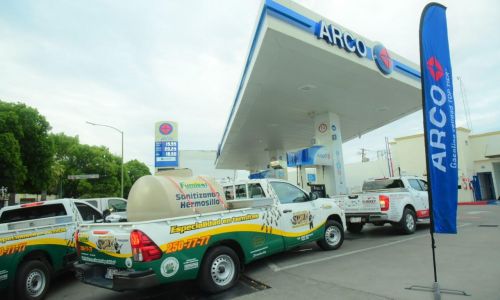 Hermosillo, Sonora, 2 de julio de 2020.- Luego de que empresas fumigadoras se sumaran al Acuerdo Social por Hermosillo que promueve la alcaldesa Celida López Cárdenas para llevar a cabo jornadas de sanitización diarias en los espacios públicos de la ciudad, ARCO Gasolineras se une al donar el combustible necesario para que los vehículos se trasladen en sus recorridos.