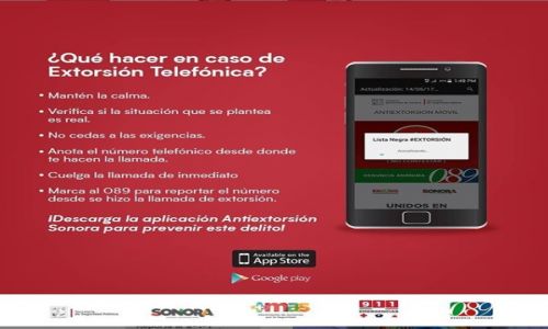 La SSP exhorta a la ciudadanía que no cuenta con este mecanismo de protección a descargar la aplicación móvil “Antiextorsión Sonora”, para prevenir ser víctima de este delito.