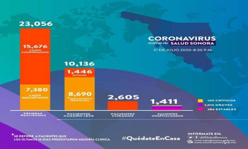 Casos Covid-19 en Sonora: 15,676 casos confirmados y 1,524 defunciones