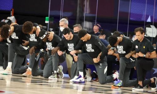 La liga y los jugadores se comprometieron a que este final de su temporada, a pesar de la ausencia de aficionados y de las condiciones de aislamiento en la “burbuja” de Disney World, contribuya a las actuales protestas contra el racismo desencadenadas por el crimen del afroamericano George Floyd a manos de un policía blanco dos meses atrás.