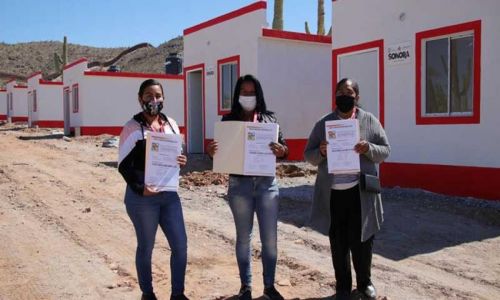 La construcción de los pies de casa estuvo a cargo de la Comisión de Vivienda del Estado de Sonora (Coves) bajo el convenio de colaboración con el Ayuntamiento local que realizó la donación de los terrenos para las familias damnificadas.