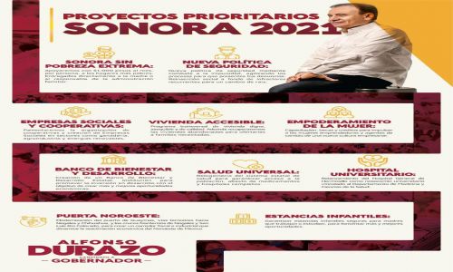 El candidato común a la gubernatura por Morena, PT, Nueva Alianza Sonora y Verde Ecologista, Alfonso Durazo Montaño, dio a conocer el decálogo de Proyectos Prioritarios Sonora 2021.