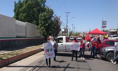 Hermosillo, Sonora.- Trabajadores del Centro de Desarrollo Infantil Ernesto Che Guevara, que tienen cuatro meses sin recibir el pago de su salario, bloquearon las calles de acceso a las oficinas de la Delegación de la Secretaría de Educación Pública en Sonora.