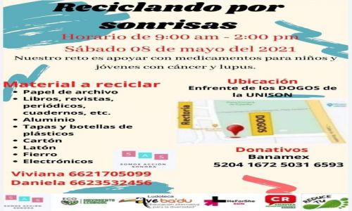 Viviana Bautista Mariscal maestra y directora de la ludoteca Ave Ba’du, dio a conocer que la cita es este sábado 8 de mayo de 9 de la mañana a dos de la tarde frente a las puertas de Rectoría de la Universidad de Sonora y donde las personas podrán llevarles diversos materiales de reciclaje.