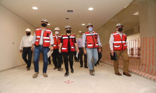 Acompañada de Ricardo Martínez Terrazas, secretario de Infraestructura y Desarrollo Urbano, y de Enrique Clausen Iberri, secretario de Salud, la mandataria estatal recorrió las diferentes áreas del nuevo hospital que se estima esté terminado en su totalidad para el mes de julio, a fin de que pueda equiparse y entrar en servicio de forma inmediata.