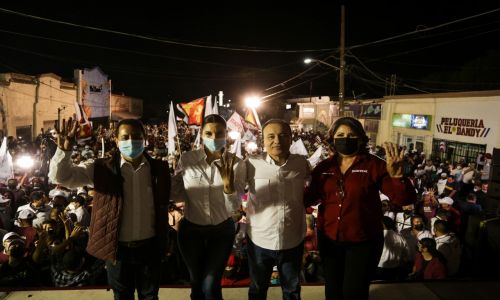 Acompañado por el candidato a alcalde, Jesús Alfonso “Tuchy” Montaño, y el candidato independiente Raúl Urías -que declinó a su favor- el senador con licencia aseguró ante una muchedumbre que abarrotó la Calle 3 y avenida Panamericana, que será el mejor gobernador que haya tenido Sonora.