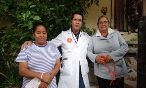 Con la mirada al frente, va de casa en casa, saluda a mujeres, hombres, niños y adultos mayores.