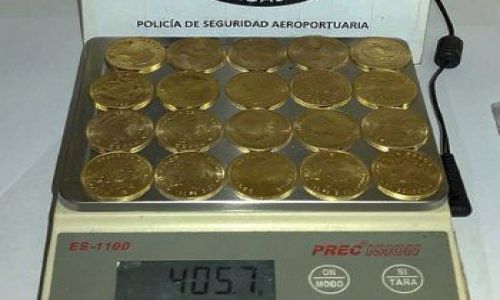 En Argentina, hombre intenta volar con 107 monedas de oro valuadas en casi 500 mil pesos