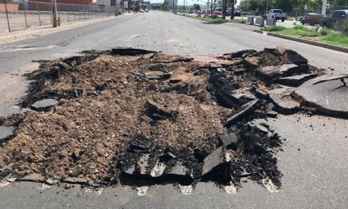 El socavón que se abrió a la altura de la localidad Pie del Cerro, Juquila, originó que las autoridades estatales determinaran el cierre total de esa vialidad.