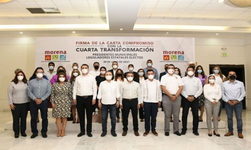 Hermosillo.- El gobernador electo, Alfonso Durazo Montaño, encabezó la firma de la Carta compromiso con la Cuarta Transformación, que suscribieron presidentes municipales y legisladores locales y federales electos emanados de Morena y de los partidos de la alianza “Juntos haremos historia en Sonora”.