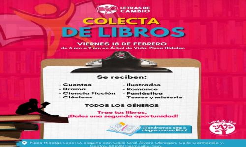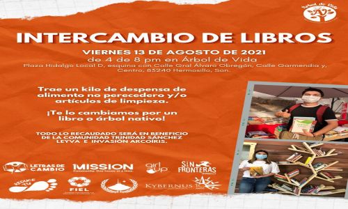 Abraham Sierra fundador de la organización Letras de Cambio, dio a conocer que este viernes de 4 de la tarde a 8 de la noche en la esquina de la calle Garmendia y la Plaza Hidalgo, será el punto de reunión donde las personas deberán llevar al menos un kilo de despensa de alimentos no perecederos y les sean cambiados por un libro o un árbol nativo.