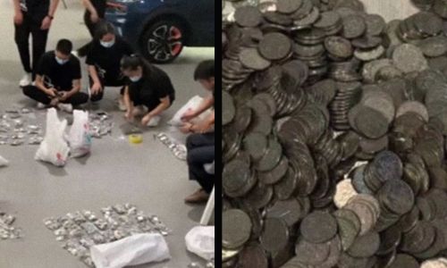 En la ciudad de Zhoukou, en China, un hombre llegó a una concesionaria de autos con cientos de bolsitas de plástico llenas de monedas y centavos.