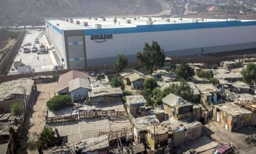 Los usuarios de redes que difundieron las fotografías contrastan entre el edificio de una compañía que genera millones de dólares en utilidades y las casas de lámina y madera.