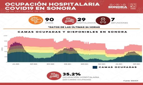 Hermosillo, Sonora a 29 de septiembre del 2021. En Sonora, la Secretaría de Salud pública notificó 90 contagios más de coronavirus y siete defunciones por dicha enfermedad.