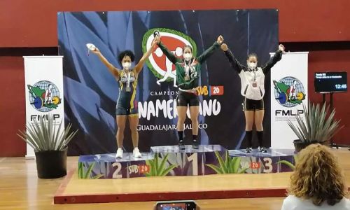 Hermosillo, Sonora, 21 de octubre del 2021 (CODESON).- Las pesistas sonorenses tuvieron un fuerte arranque en el Campeonato Panamericano Juvenil de Halterofilia Sub 20, tras conquistar cuatro medallas, tres de Karla Ortiz (un oro y dos platas) y una de Daphne Guillén (bronce), ambas en la categoría de 59 kilogramos, en el marco de la segunda jornada del certamen con sede en Guadalajara, Jalisco.