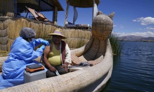 En Peru, enfermeros acuden hasta el mitico lago de Incas para aplicar vacunas anticovid