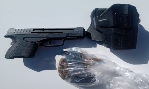 Personal del Ejército Mexicano reportó la presencia de las personas y dos vehículos estacionados sobre el camino, uno de estos un Nissan Versa y un Saturn, línea VUE de color rojo; por tal motivo oficiales de la PESP acudieron al sitio y aseguraron a las personas en posesión de un arma de fuego calibre .9mm con 10 cartuchos útiles.