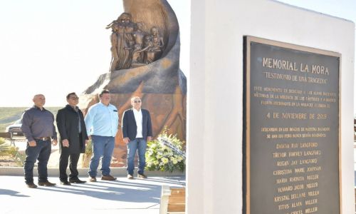 En presencia de Adam Langford, presidente municipal de Bavispe; Marlon Arturo Balderrama, artista sonorense que construyó el memorial, y miembros de la Guardia Nacional, el gobernador Durazo Montaño colocó una ofrenda floral, y mostró sus respetos en conmemoración de los hechos ocurridos el 4 de noviembre de 2019.
