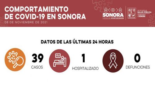 Este 8 de noviembre, Sonora alcanzó 113 mil 149 casos de COVID-19 y 8 mil 535 defunciones, luego de que la Secretaría de Salud confirmó 39 diagnósticos positivos de esta enfermedad y ningún fallecimiento.