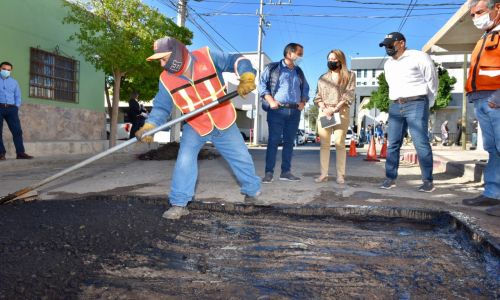 Hermosillo, Sonora, 01 de diciembre de 2021.- El presidente municipal, Antonio Astiazarán Gutiérrez, supervisó los trabajos de bacheo en la ciudad, mediante los cuales se han aplicado más de 72 mil 500 metros cuadrados de carpeta asfáltica desde el inicio de la administración.