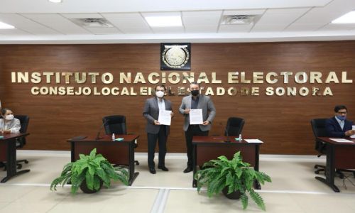 Atestiguaron la firma de convenio la subsecretaria de Políticas Educativas y Participación Social, María Guadalupe González Lizárraga; el subsecretario de Educación Básica, Ricardo Aragón Pérez, así como los vocales integrantes de la Junta Local del INE en Sonora.
