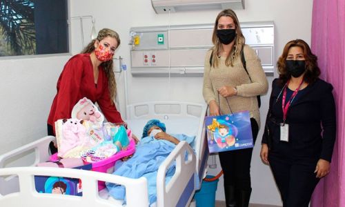 Para entregar presentes a la recién nacida y la madre llegaron al hospital Marina Herrera, directora de DIF Cajeme y Gabriela Galindo, coordinadora del Voluntariado, quienes a nombre Patricia Patiño, presidenta de DIF Cajeme, entregaron varios artículos de bebé y regalos para la primer niña del 2022 y su madre.
