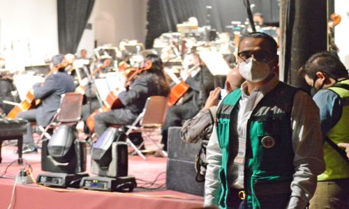Álamos, Sonora; 22 de enero de 2022.- La Coordinación Estatal de Protección Civil montó una vigilancia permanente en el arranque del Festival Alfonso Ortiz Tirado (FAOT 2022), en donde revisó el cumplimiento de los protocolos Covid-19 entre sus asistentes.