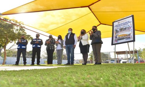 La directora del plantel, Nahita Raquel Ruiz Anaya, agradeció por establecer el lazo comunidad-gobierno para obtener un espacio digno para 80 niños donde podrán tomar sus alimentos al aire libre ante la emergencia sanitaria, así como para sus actividades físicas y de esparcimiento.