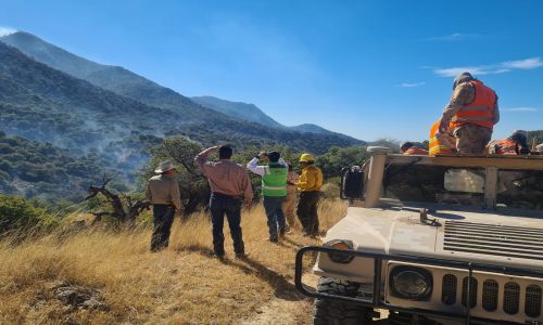 Juan González Alvarado, coordinador estatal de Protección Civil, destacó la estrategia de combate del siniestro implementada en la zona, en donde colaboraron elementos expertos en el tema de la Comisión Nacional Forestal (Conafor), Secretaría de la Defensa Nacional (Sedena), Guardia Nacional, autoridades municipales, brigadistas ejidales y elementos de su misma coordinación.