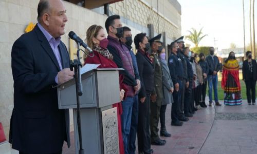 En el marco del 82 Aniversario del Día de la Bandera, esta mañana se llevó a cabo el acto cívico conmemorativo oficial en la Explanada Municipal, encabezado por el alcalde Santos González Yescas.