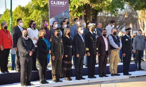 Después el Alcalde presidió la ceremonia de izamiento del Lábaro Patrio para luego encabezar el desfile cívico en conmemoración de la Bandera Mexicana, en el que participaron 735 personas, 18 vehículos, 8 motos y 20 contingentes, tanto de organismos, dependencias municipales, planteles educativos y las Comisarías de la localidad.
