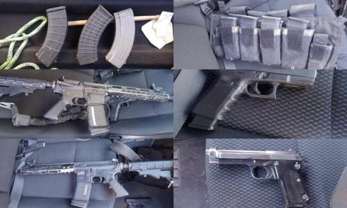 Se localizó en el interior del automóvil dos armas de fuego largas y dos cortas, además diversos cargadores con cartuchos útiles, portacargadores, radio de telecomunicación y otros indicios que fueron procesados por personal de Servicios Periciales.