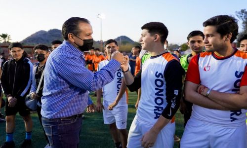 Hermosillo, Sonora, marzo 22 de 2022.- “El deporte es una oportunidad para que el gobierno invierta en lo mejor que puede tener, que es su gente y en el talento que tenemos en nuestra ciudad”, expresó el presidente municipal, Antonio Astiazarán Gutiérrez, en la entrega de uniformes a las dos selecciones de Hermosillo que jugarán en el Torneo Estatal de Futbol Sub 20.