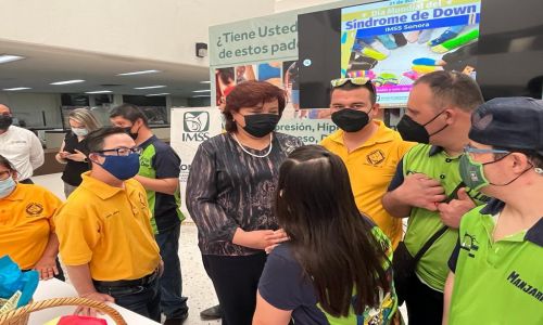 Como parte de este compromiso, las instalaciones del IMSS en la entidad recibieron a la Asociación de Padres Esfuerzo Único, integrada por jóvenes con Síndrome de Down y problemas motrices de Ciudad Obregón, quienes realizaron una muestra de los productos de repostería que elaboran.