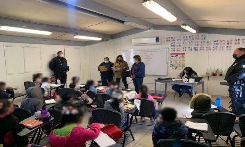 Hermosillo, Sonora; 5 de abril de 2022. Personal de la Secretaría de Seguridad Pública de Sonora visita planteles educativos para orientar a las niñas, niños y adolescentes, así como a personal docente, sobre el protocolo para prevenir, atender y brindar seguimiento a casos de violencia familiar y de género, denominado “Salva”, informó Zulema Boneo Silva.