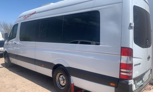 Al inspeccionar la vagoneta de pasajeros , Mercedez-Benz, color blanco, los oficiales observaron que en la parte posterior a la cabina era abordada por diez extranjeros.