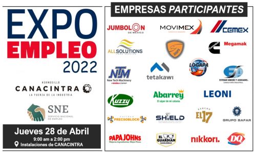 Este jueves 28 de abril se realizará la “Expo Empleo Canacintra 2022” donde se ofrecerán a los asistentes oportunidades de trabajo en 24 empresas que buscan incorporar personal para diversas áreas.