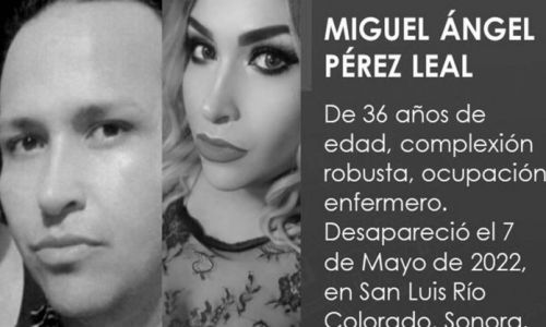 Con la identificación de sus señas particulares, se observó en el cuerpo un tatuaje en forma de rosa en el antebrazo derecho y uno en forma de un atrapasueños en el tobillo derecho, que coinciden con los señalados en la descripción realizada en la Alerta de Búsqueda de Miguel Ángel Pérez Leal, joven enfermero, de 36 años, reportado como desaparecido en San Luis Río Colorado, desde el pasado 7 de mayo del año en curso.