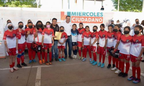 Previo al Miércoles Ciudadano en la colonia Los Olivos, el Presidente Municipal respaldó a las deportistas quienes buscarán poner en alto a Hermosillo durante el Torneo Estatal de la Asociación de Fútbol del Estado de Sonora, luego de una ardua preparación física y mental.