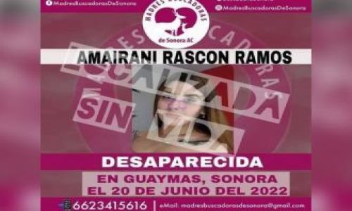 De manera extraoficial trascendió se trata de Amairani Rascón Ramos, de 25 años, que se encontraba desaparecida desde el pasado lunes en Guaymas.