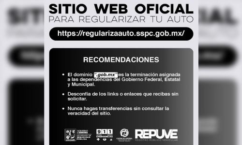 La funcionaria de la Secretaría de Seguridad Pública (SSP) exhortó a la ciudadanía a agendar su cita gratuita en la página regularizaauto.sspc.gob.mx y comentó que con la regularización se tiene mayor certidumbre legal sobre la posesión de los vehículos, además de que, con el pago del trámite, se ayuda a los municipios a financiar programas de pavimentación. Tan solo para Sonora representa una bolsa de más de 90 millones de pesos para los municipios.