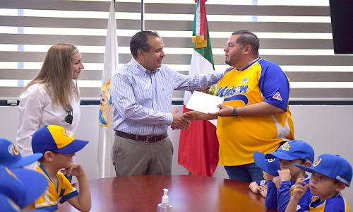 Hermosillo, Sonora, a 20 de julio de 2022.- El presidente municipal, Antonio Astiazarán Gutiérrez, entregó apoyos a niños de la Liga Infantil y Juvenil de Beisbol Buhitos Unidos por Sonora A.C., quienes participarán en el Torneo Nacional de Ligas Categoría 5-6, que se realizará en Tijuana, Baja California.