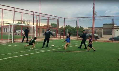 Durante la semana, en el deportivo de la Calle 39, ubicado en colonia Santa Cecilia, Policías Estatales platicaron con los vecinos del sector y bajaron de las patrullas para ingresar al campo de futbol donde convivieron con niñas y niños de la comunidad.