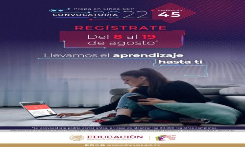 Hermosillo, Sonora; 11 de agosto de 2022.- La Secretaría de Educación Pública (SEP) a través de la Secretaría de Educación y Cultura en la entidad (SEC), invita a las y los sonorenses a participar en la convocatoria de registro de la generación 45 del Servicio Nacional de Bachillerato en Línea, “Prepa en Línea-SEP”.
