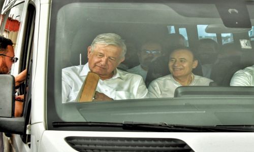 “Estoy muy contento de estar en Sonora y que tienen un extraordinario gobernador, muy buen gobernador, Alfonso Durazo. Se va a apoyar a Nogales, es un compromiso que vamos a cumplir, de que ya no siga pasando el tren por el centro de Nogales”, resaltó.