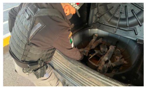 Al llegar al cruce fronterizo “Puerta de México” en Nogales, el semáforo fiscal le marcó el color rojo para reconocimiento aduanero o inspección, por lo que los agentes procedieron a revisar el vehículo.