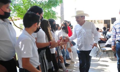 “Yo voy a hacer mi parte. Voy a aplicarme como gobernador a otorgarles los mayores apoyos posibles. Que las escuelas estén en las mejores condiciones posibles. Que todas las escuelas del estado tienen alguna necesidad y se requiere mucho dinero, sí, pero poco a poco vamos a ir mejorando su entorno y ampliando los apoyos que les otorgamos, como el tema de las becas y la parte tecnológica. Y yo estoy seguro que en reciprocidad, ustedes, con el tiempo, nos habrán de entregar grandes satisfacciones como los grandes profesionistas que llegarán a ser en algún momento muy cercano de su vida”, indicó.