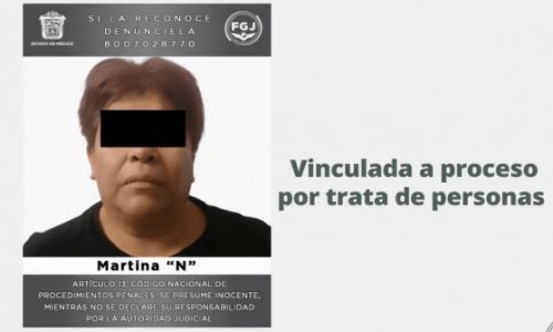 Autoridades de la Fiscalía General de Justicia del Estado de México (FGJEM) acreditaron ante el juez la probable participación de Martina “N” en el delito de trata de personas, en la modalidad de explotación sexual en agravio de su hija de 19 años, por lo que fue vinculada a proceso.