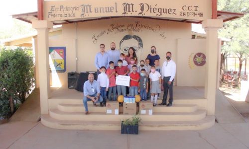 Durante la visita a las escuelas también se hizo entrega de material deportivo y de sanitización, además de árboles para promover la cultura del cuidado del medio ambiente por medio de la reforestación de los espacios donde conviven los estudiantes.