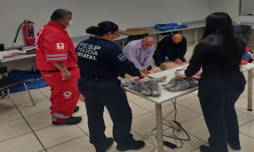 La capacitación, a cargo del paramédico de la Cruz Roja Mexicana, Francisco Martín Palacios Munguía, se realizó para mujeres y hombres integrantes de la corporación, en seguimiento al programa de profesionalización y formación continua para atender situaciones de emergencia como primeros respondientes.
